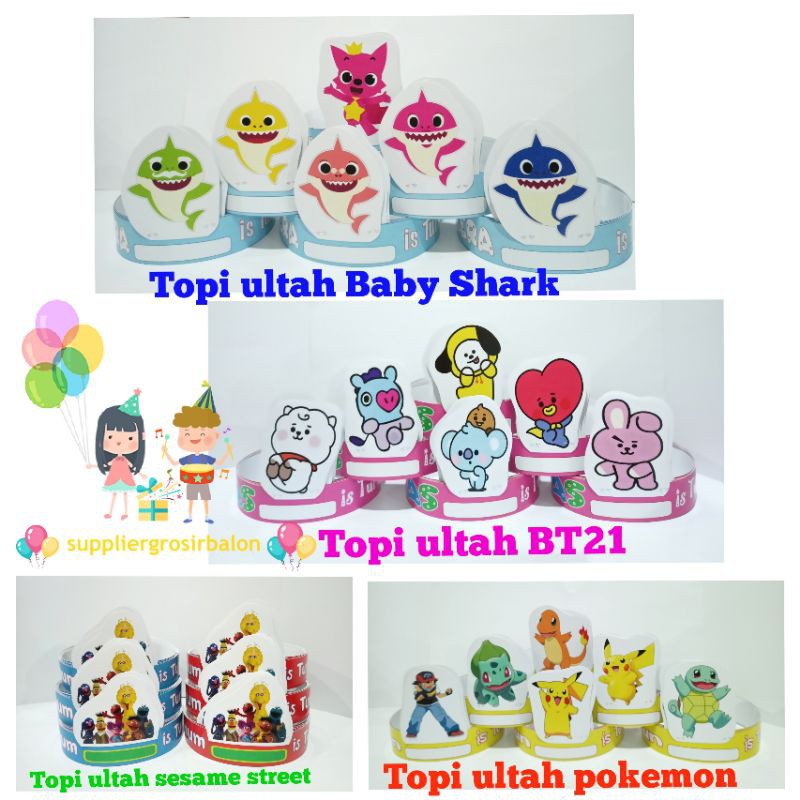 Topi Ulang Tahun Anak Tema Baby Shark Bt21 Tsum Tsum Talking Tom Cat Shopee Indonesia
