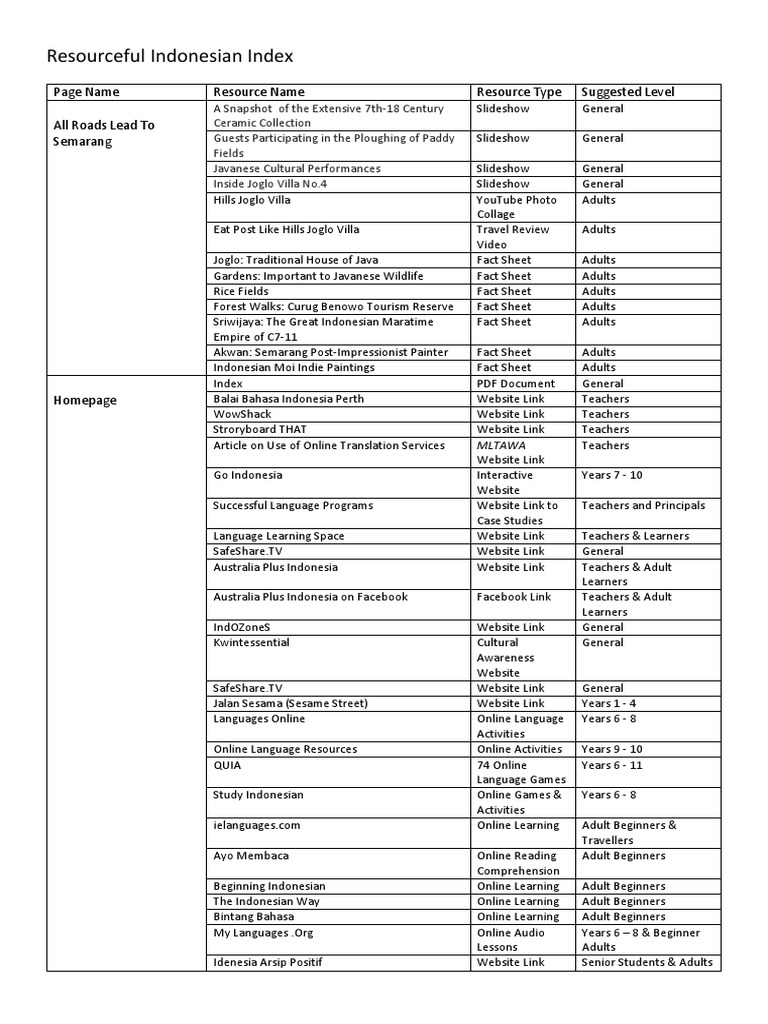 Resourceful Indonesian Index Docx Indonesian Language Java