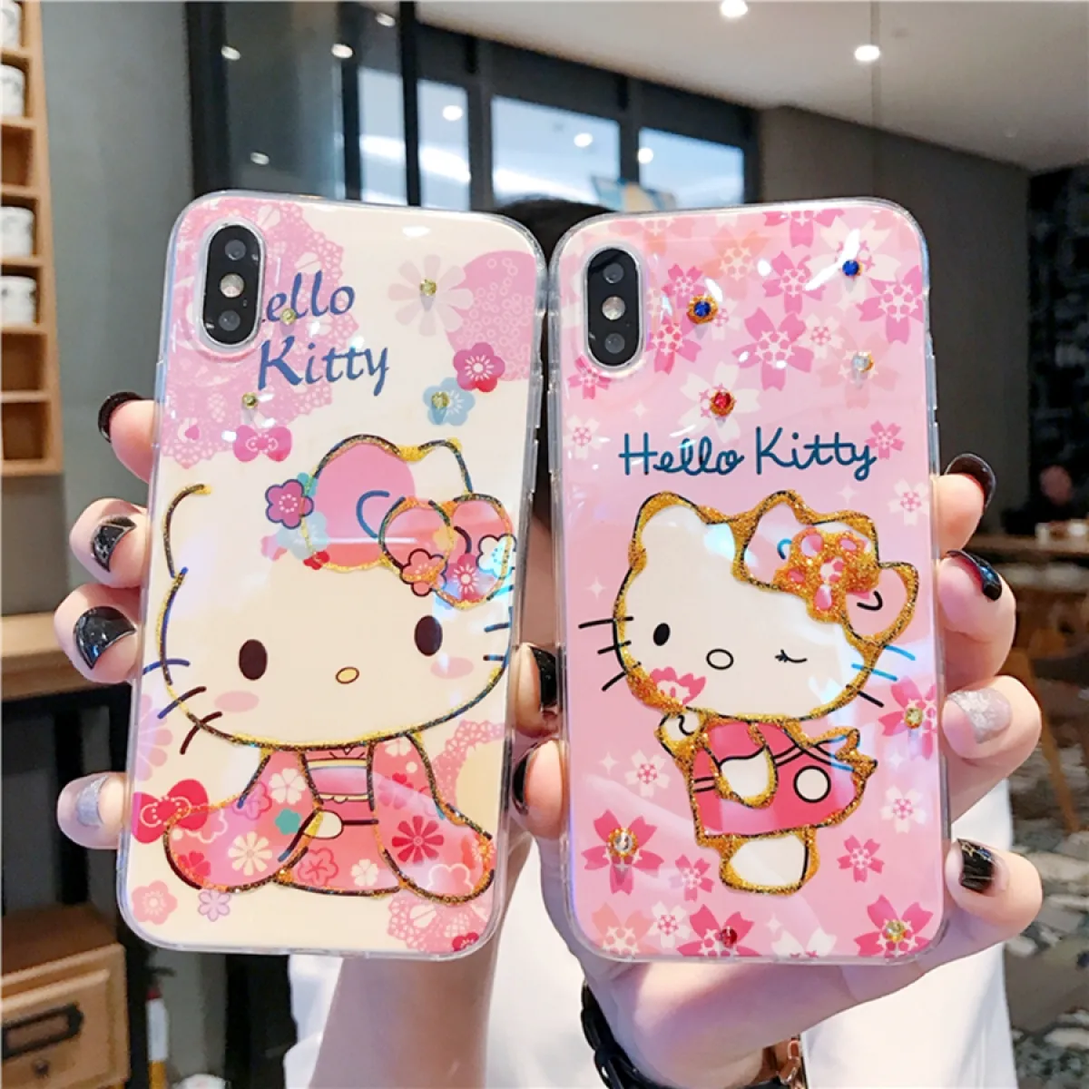 Cartoon Lovely Hello Kitty Mobile Phone Case With Bling Bling Glitter And Reinstone For Iphone 12