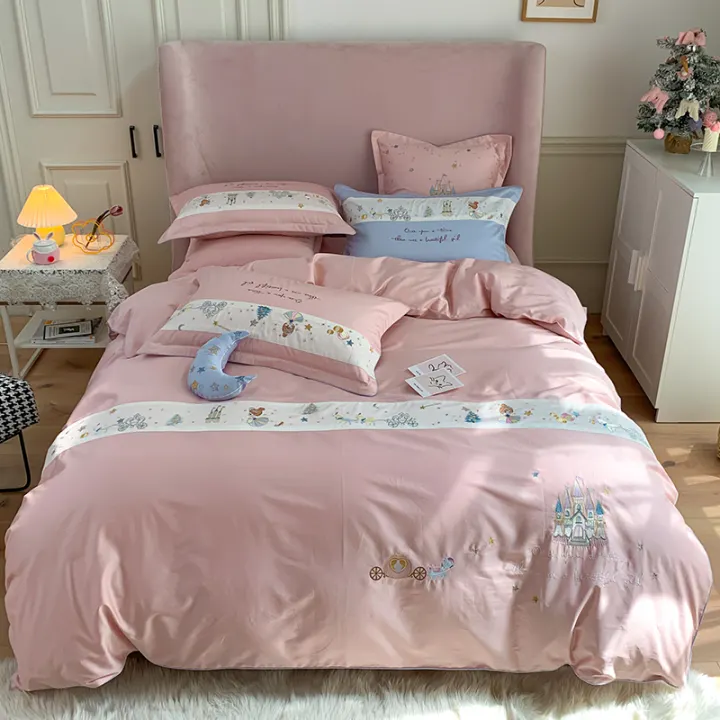 Tencel 4pcs Set Rasa Dingin Sutra Es Tidur Telanjang Set Seprai Bordir Putri Angin Kartun Kamar Anak Anak Set Sprei Musim Panas Lazada Indonesia